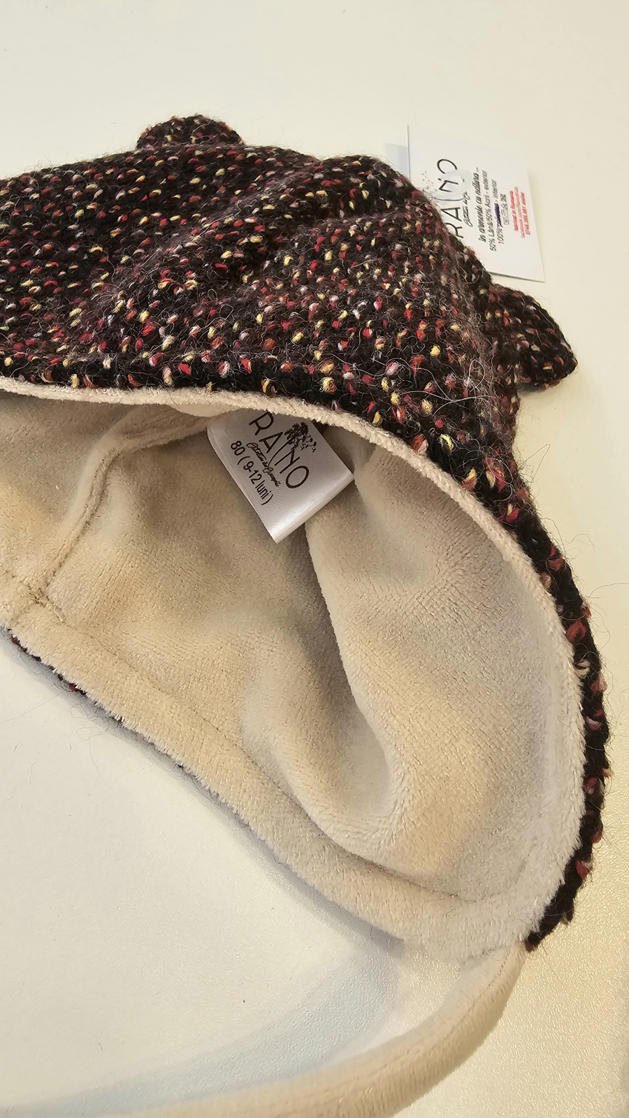 Exteriorul din lână si bumbac oferă protecție împotriva frigului, iar interiorul dublat cu bumbac și un strop de elastan asigură confort, respirabilitate și libertate de mișcare. Prinderea sub bărbie menține căciulița fixă, fără să strângă, fiind perfectă pentru bebeluși și copii activi.