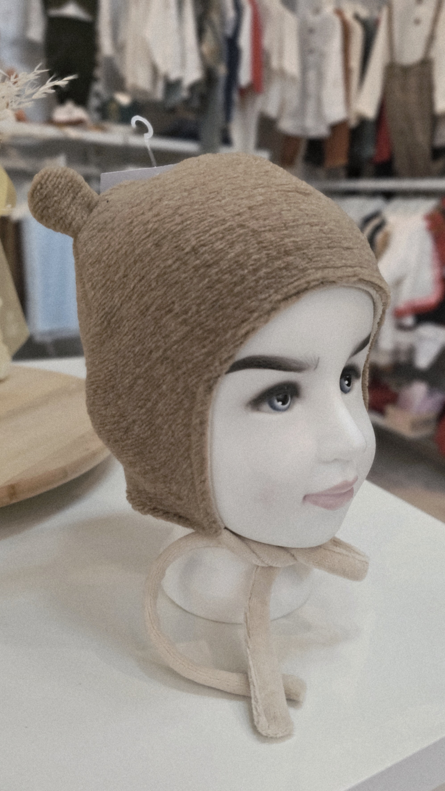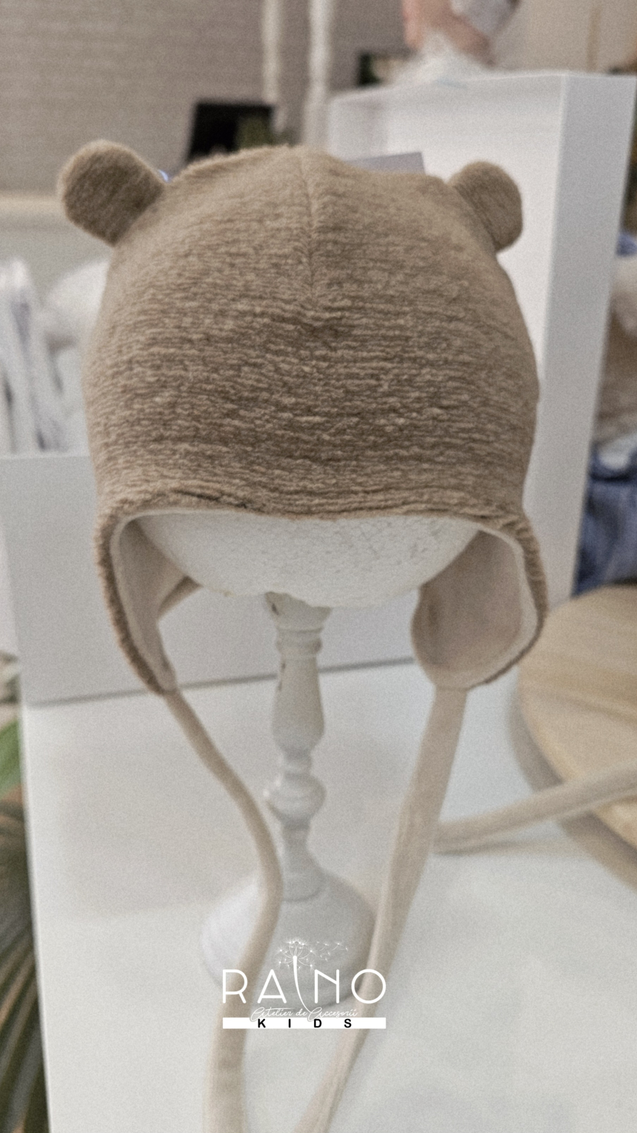 Exteriorul din lână si bumbac oferă protecție împotriva frigului, iar interiorul dublat cu bumbac și un strop de elastan asigură confort, respirabilitate și libertate de mișcare. Prinderea sub bărbie menține căciulița fixă, fără să strângă, fiind perfectă pentru bebeluși și copii activi.