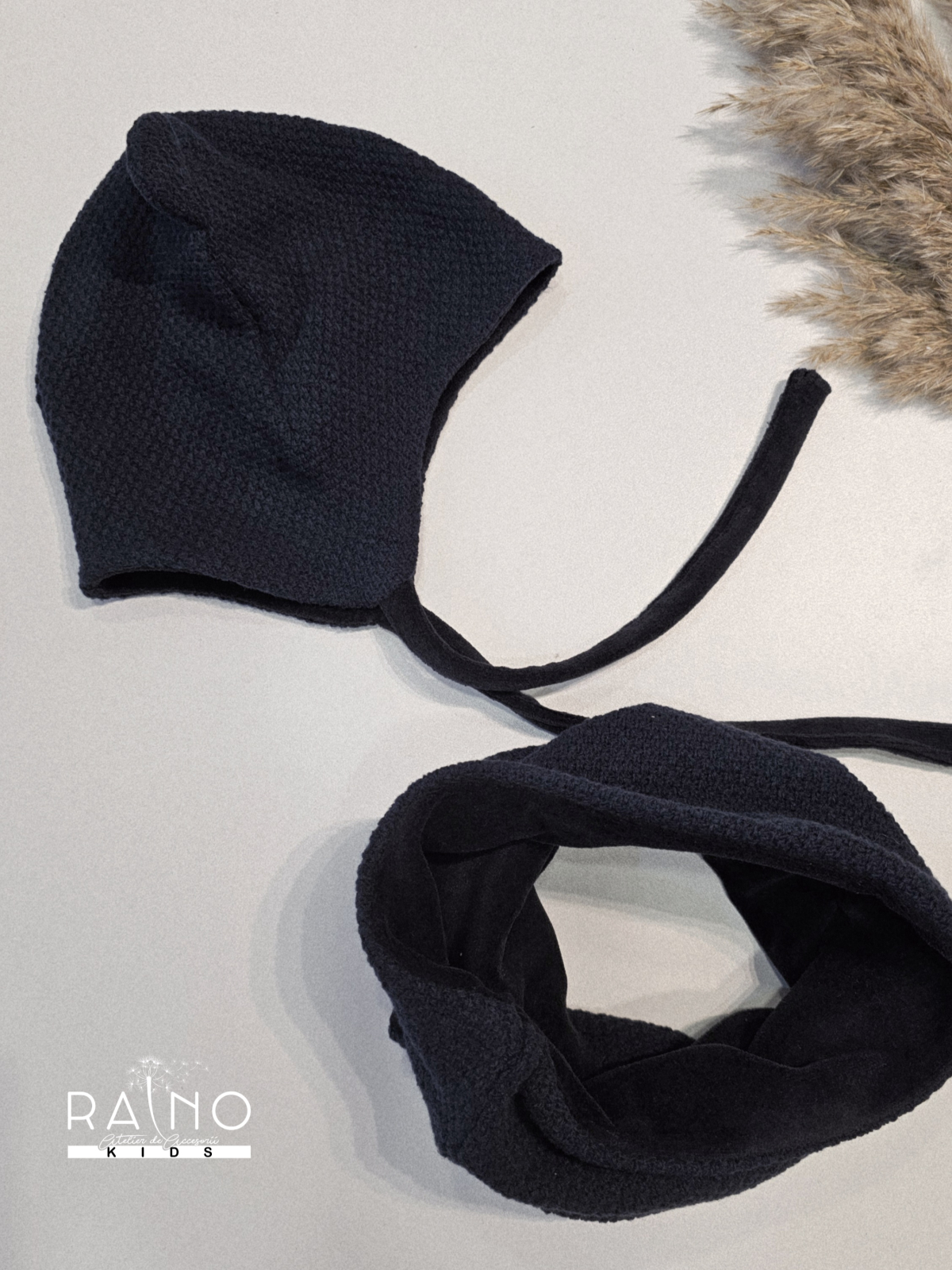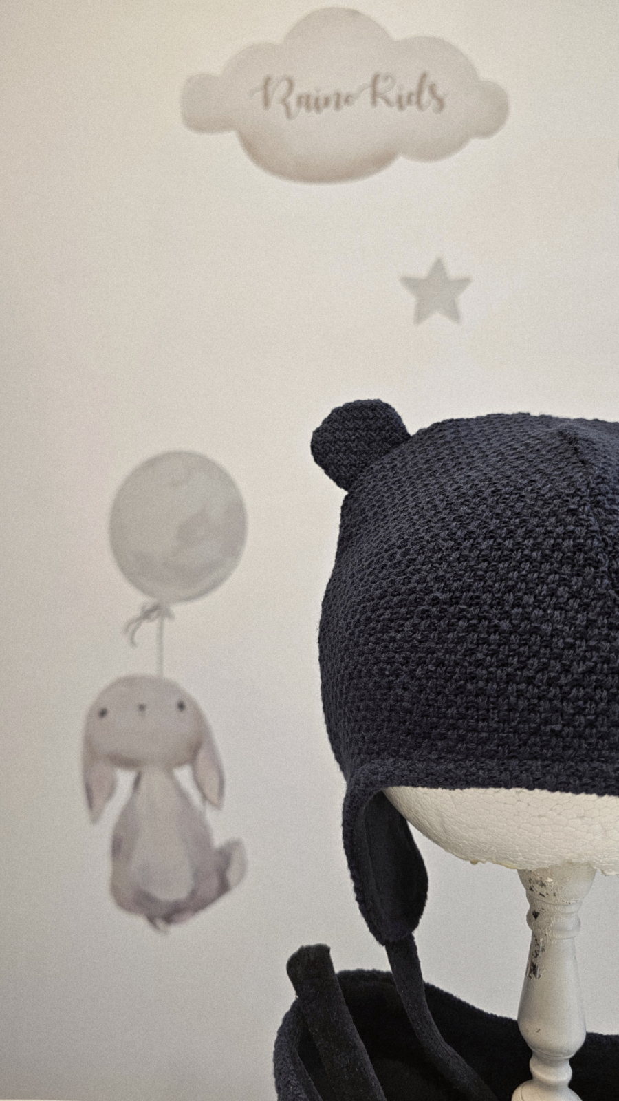 Exteriorul din bumbac oferă protecție împotriva frigului, iar interiorul dublat cu bumbac și un strop de elastan asigură confort, respirabilitate și libertate de mișcare. Prinderea sub bărbie menține căciulița fixă, fără să strângă, fiind perfectă pentru bebeluși și copii activi.