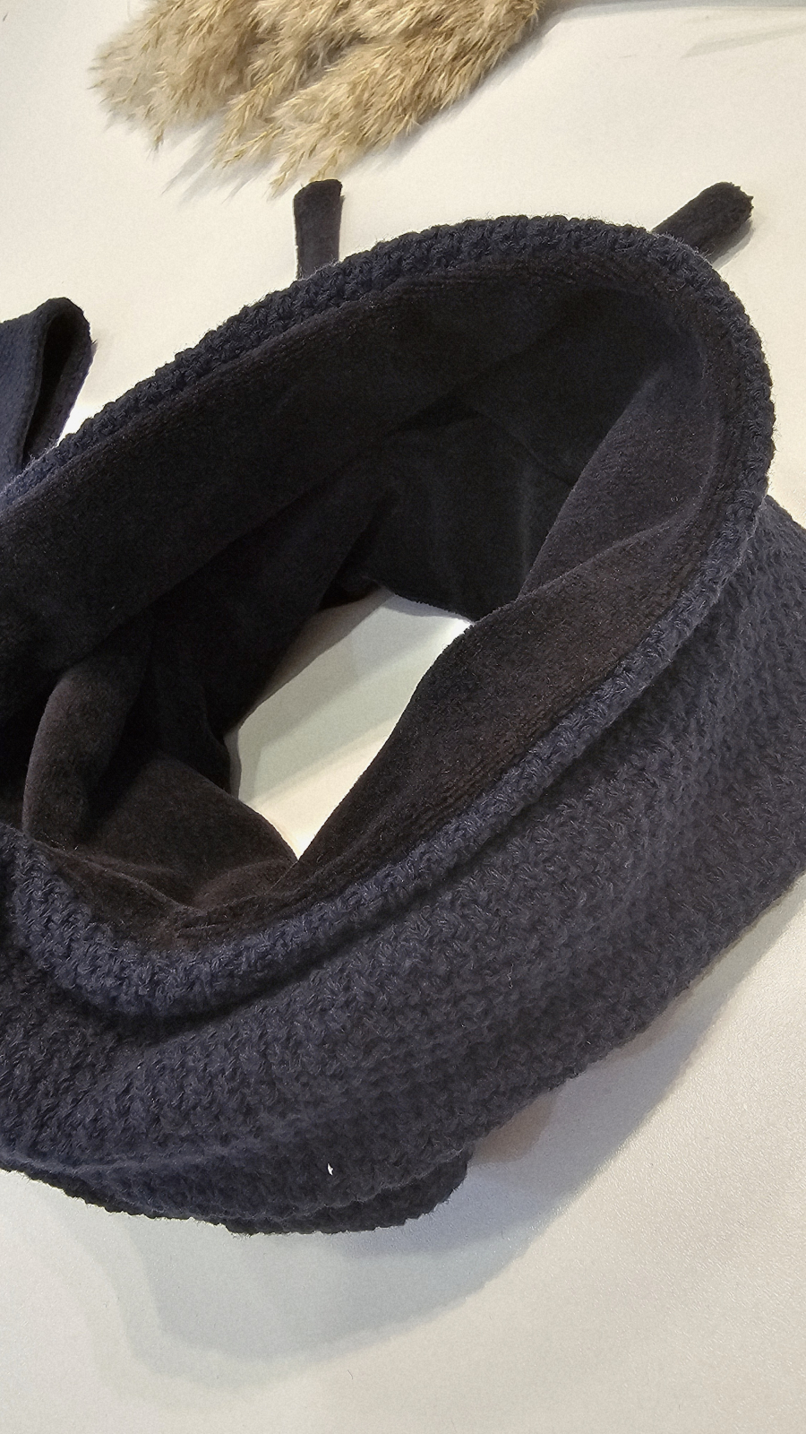 – Caciulita legată sub bărbie pentru fixare sigură, esarfa lejera