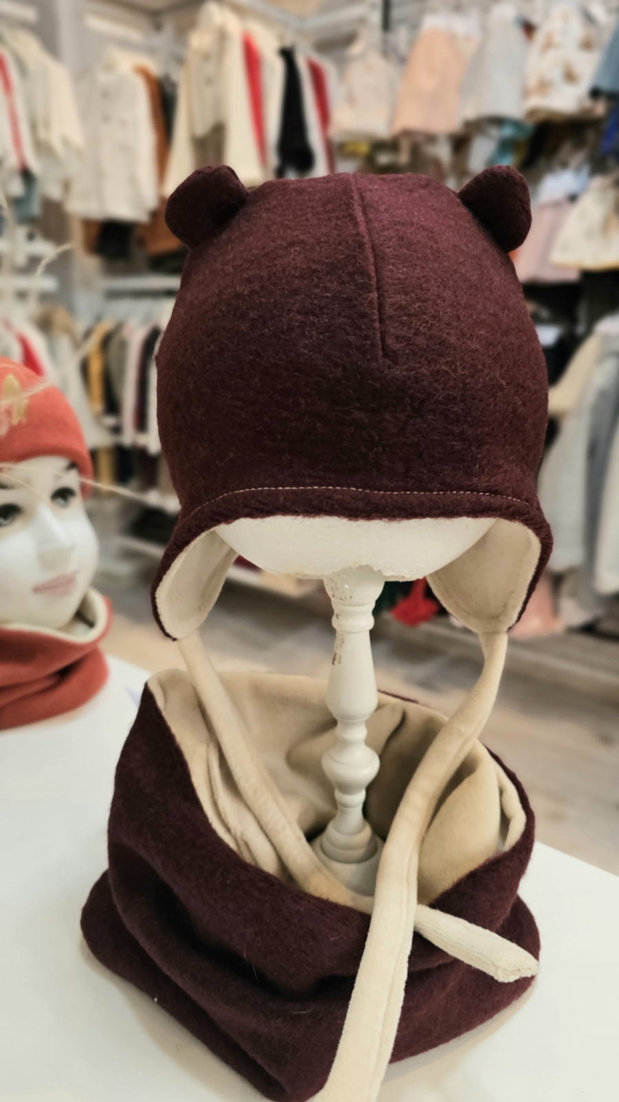Călduros, moale și plin de farmec – aceast set compus din căciuliță cu urechi legată sub bărbie si esarfa circulara este creat în atelierul Raino Kids, cu grijă pentru pielea sensibilă a copiilor.
