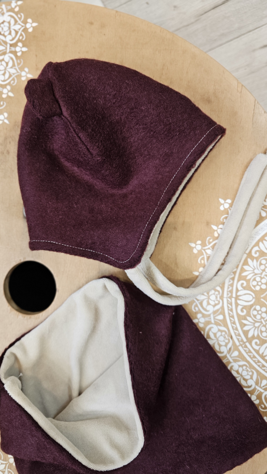 Exteriorul din lână si bumbac oferă protecție împotriva frigului, iar interiorul dublat cu bumbac și un strop de elastan asigură confort, respirabilitate și libertate de mișcare. Prinderea sub bărbie menține căciulița fixă, fără să strângă, fiind perfectă pentru bebeluși și copii activi.